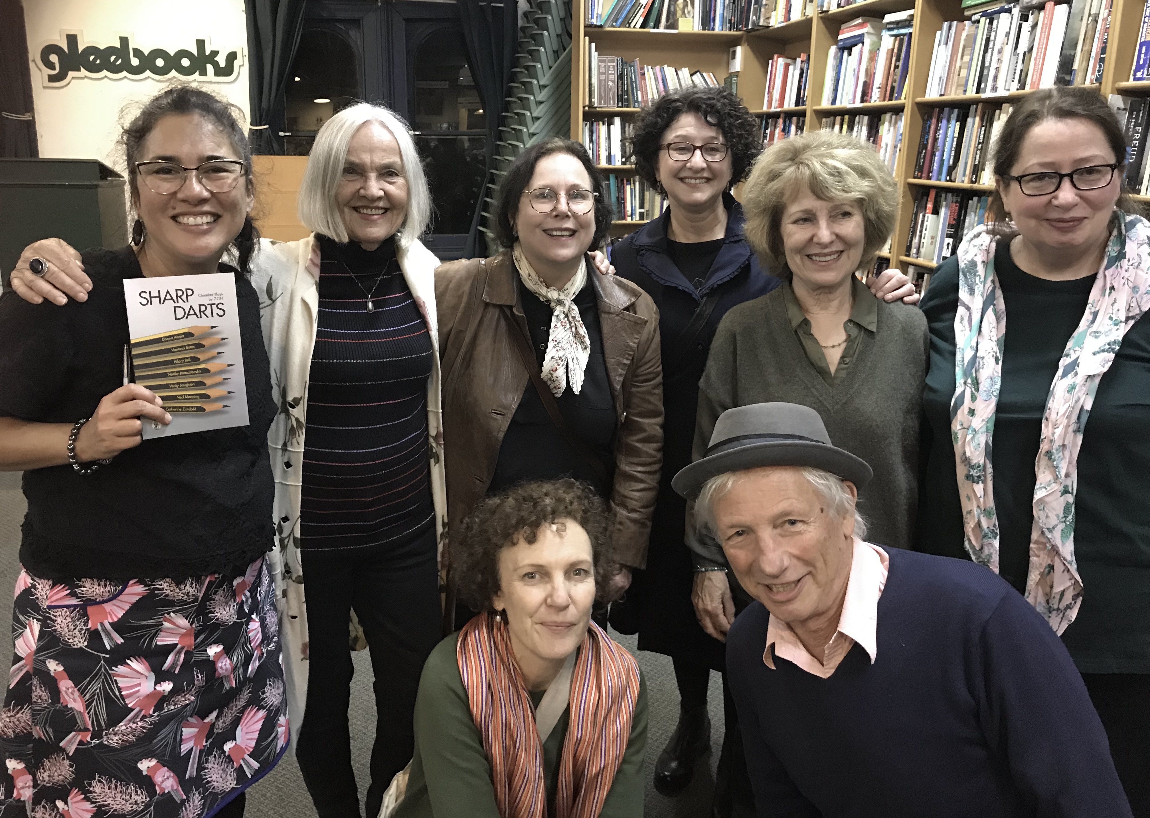Last Friday Louise Gough, the new Executive Director and CEO of Australian Plays Transform, launched our latest anthology of short scripts, Sharp Darts: Chamber Plays by 7-ON at Sydney’s Gleebooks. It was fabulous evening, wonderful—and rare—to have all seven of us in the same city at the same time.